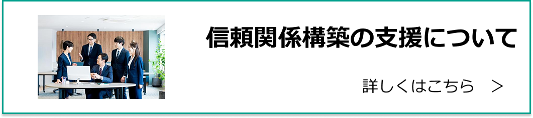 M&A成立後は、新たな企業文化の醸成を通じて、組織としての一体感を育みます。従業員との対話はもちろん、主要な取引先や金融機関などにも丁寧に説明を行い、社内外における信頼関係を確固たるものにしていくことが、M&Aの成功を支えます。