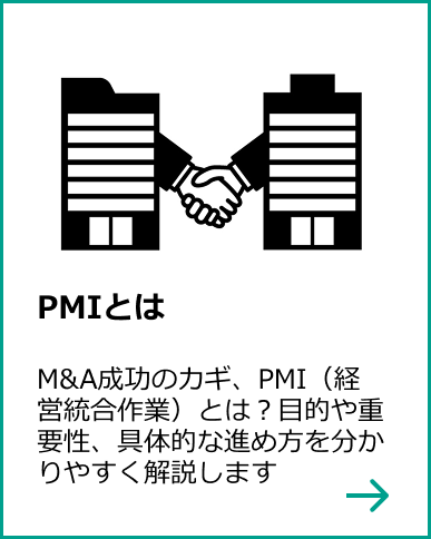 PMIとは、主にM&A成立後に行われる統合に向けた作業であり、M&Aの目的を実現させ、統合の効果を最大化するために必要なものです。 Post Merger Integrationの頭文字をとり、「PMI」と呼ばれます。