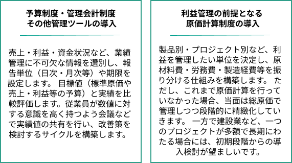 - 不適切な会計処理を是正し、会計・財務処理の適正性を確保します